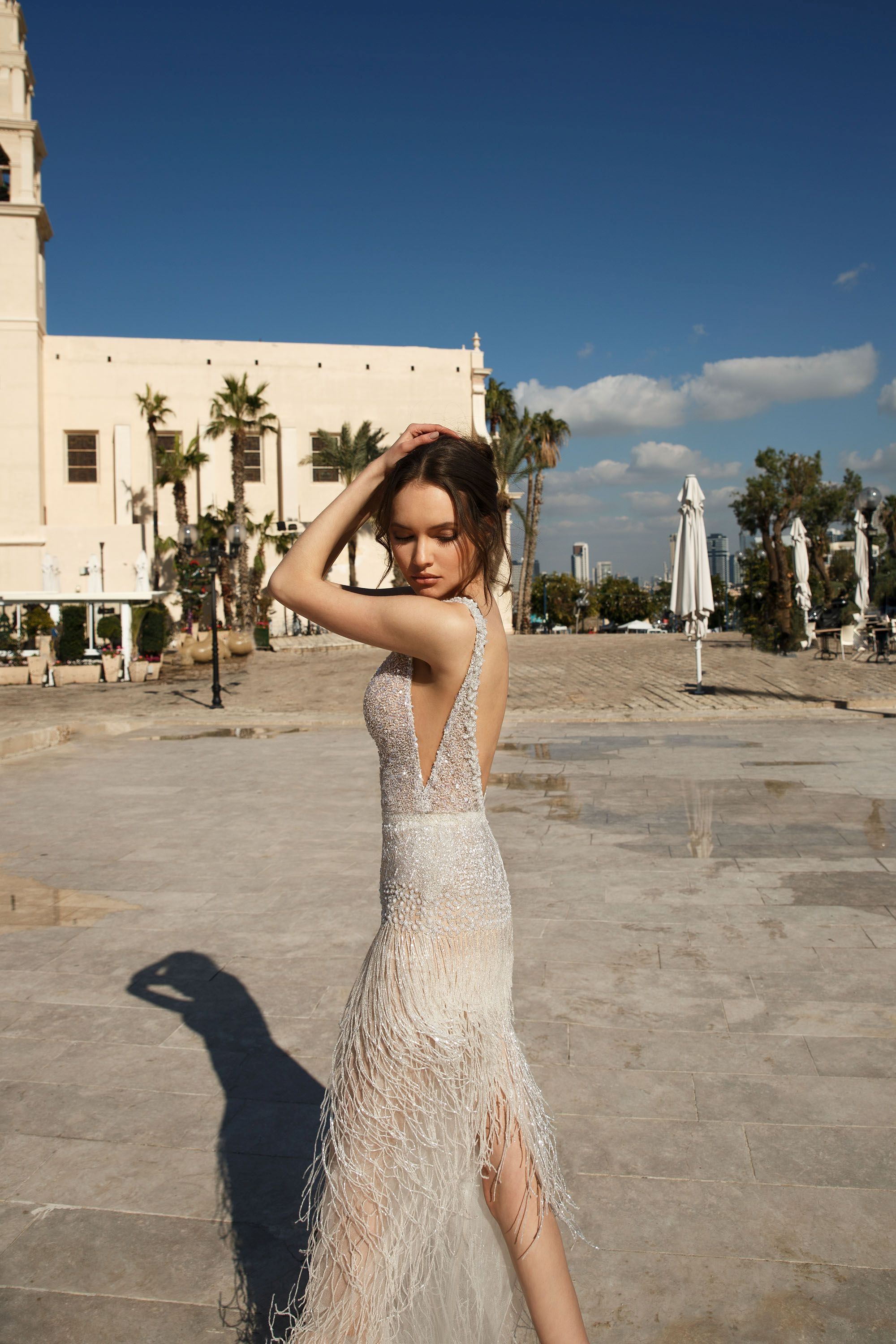 שמלה עוצרת נשימה מלאת גלאם ושיק. השמלה, בעלת מפתח קדמי ומחשוף בגב, מלאה בפרנזים, חרוזים ופייטים שיהפכו כל כלה לכוכבת. -