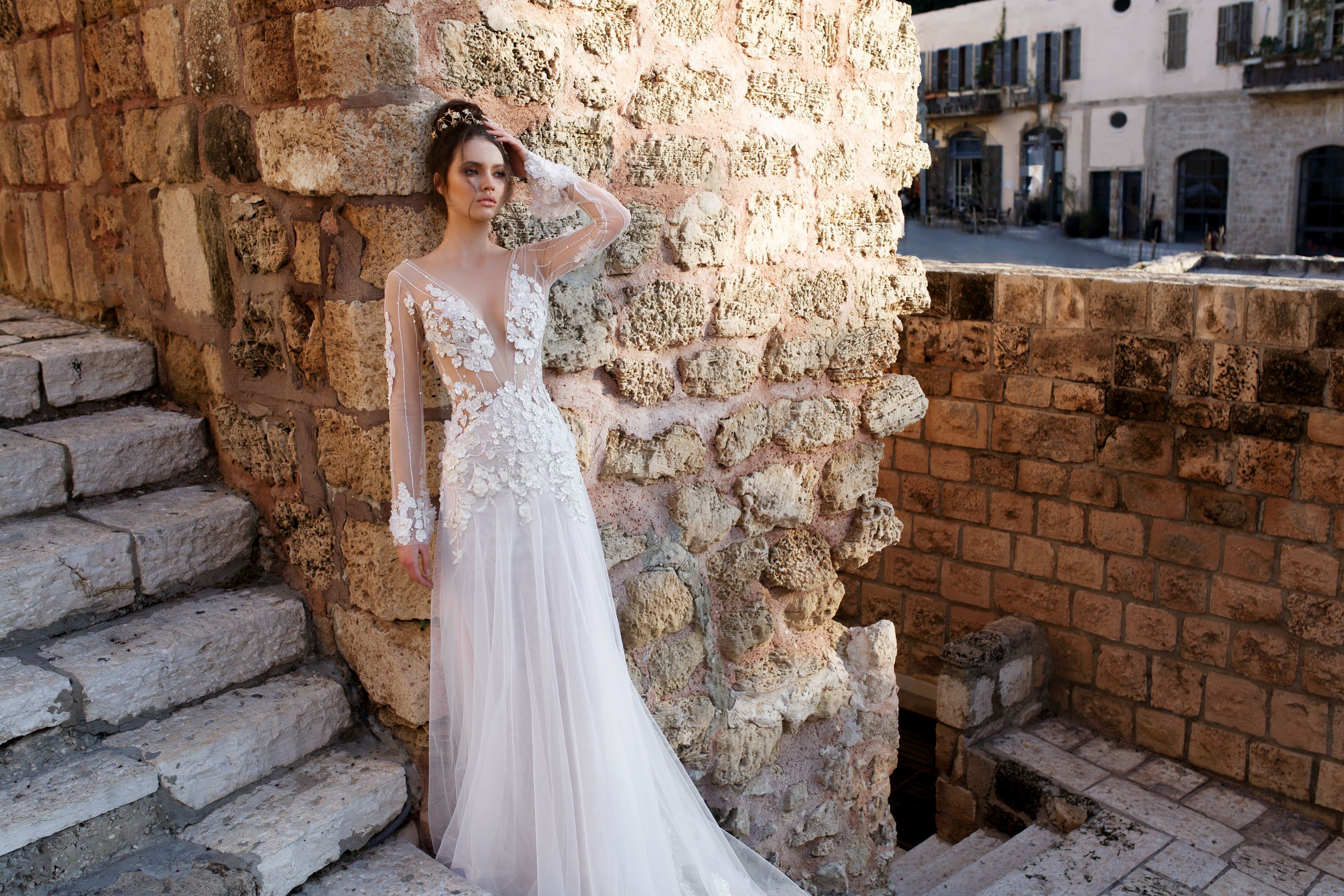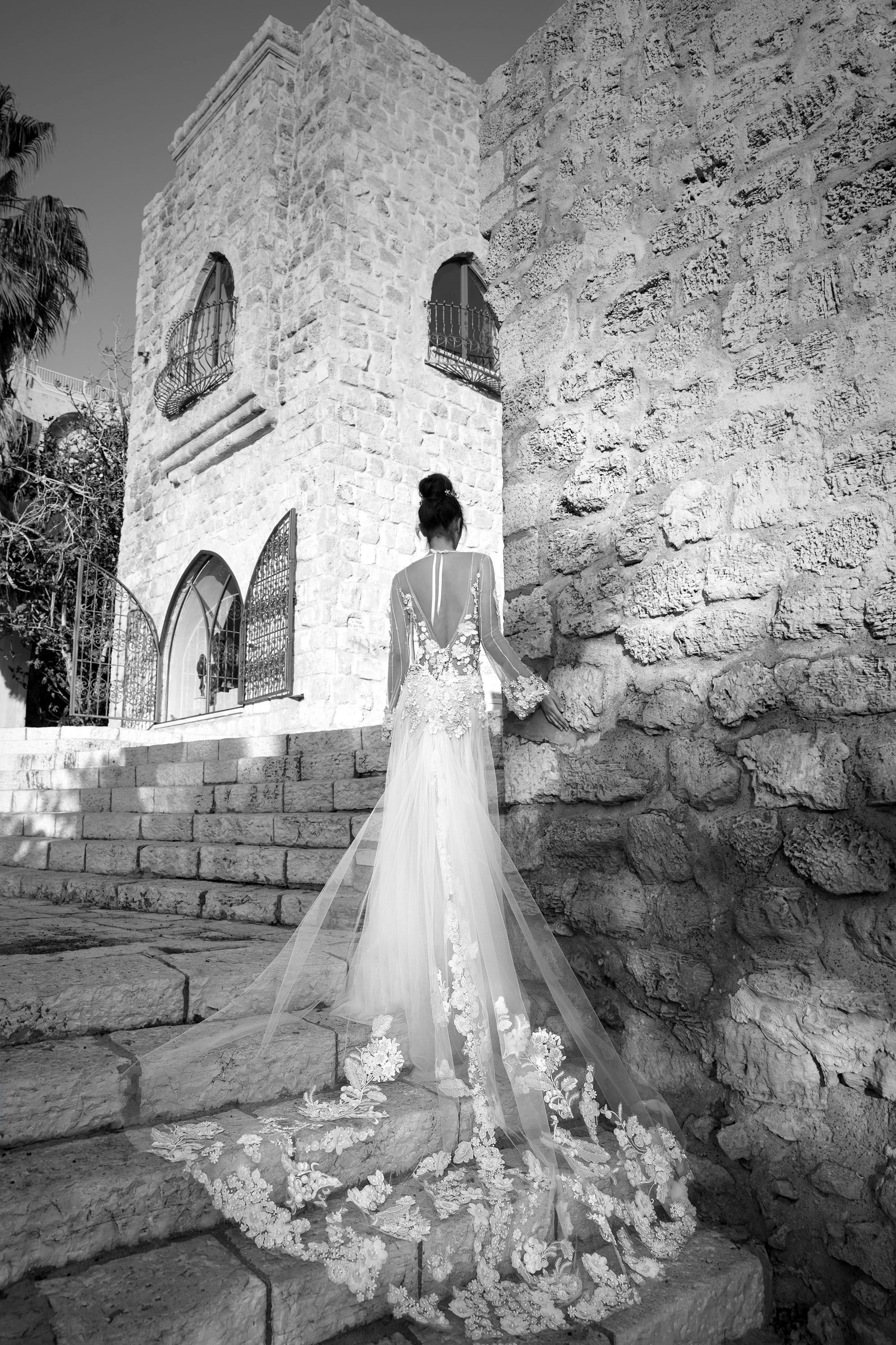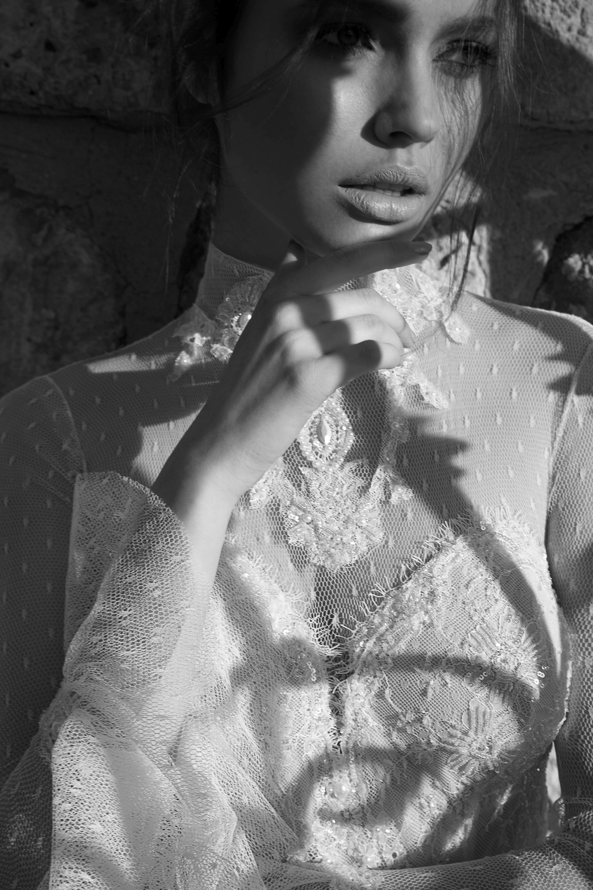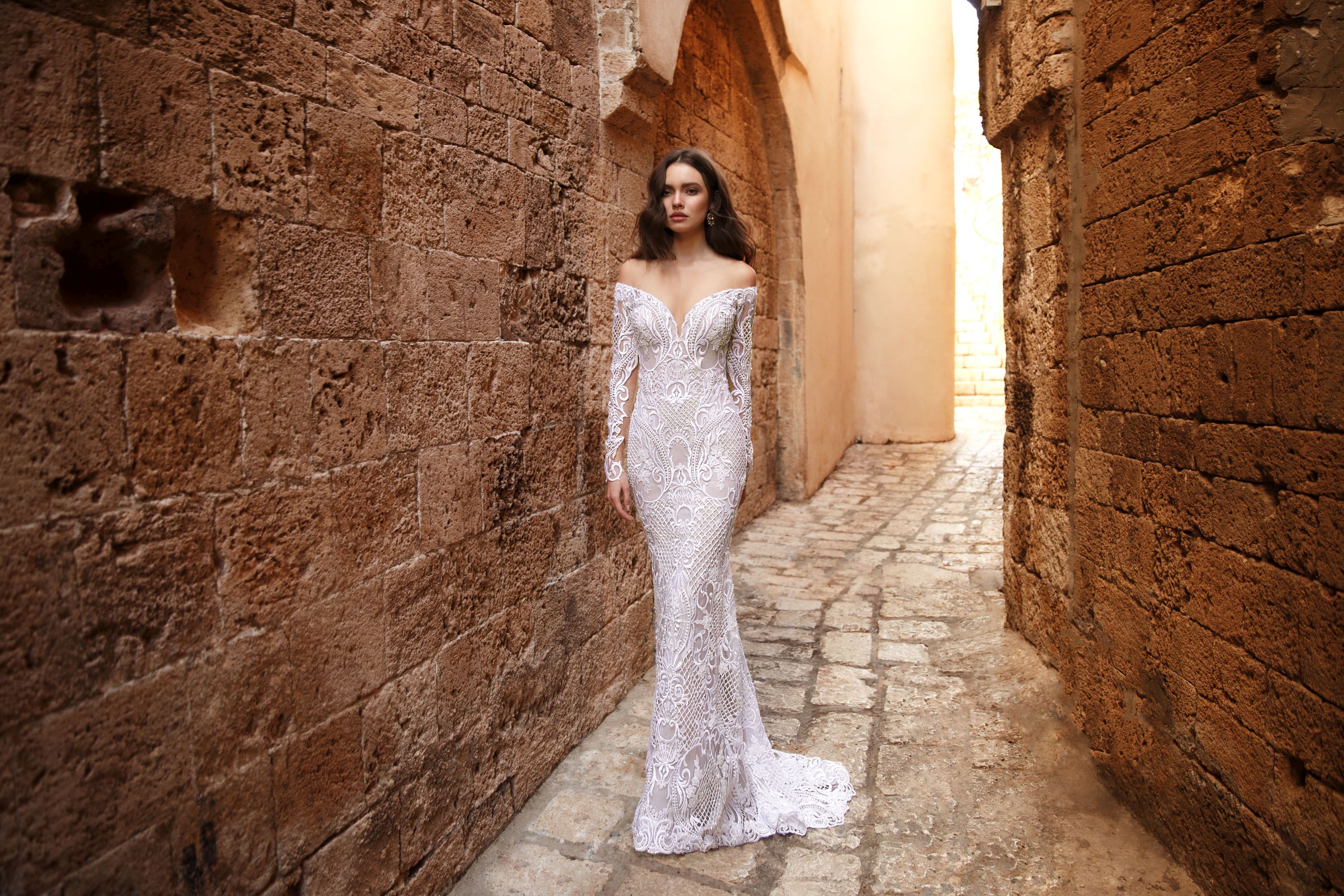 שמלה סופר מחמיאה ונשית העשויה מתחרה מרהיבה, משלבת משחקי שקיפויות ובעלת מפתח אוף דה שולדרז ייחודי הגורם לכלה למראה אצילי במיוחד. -