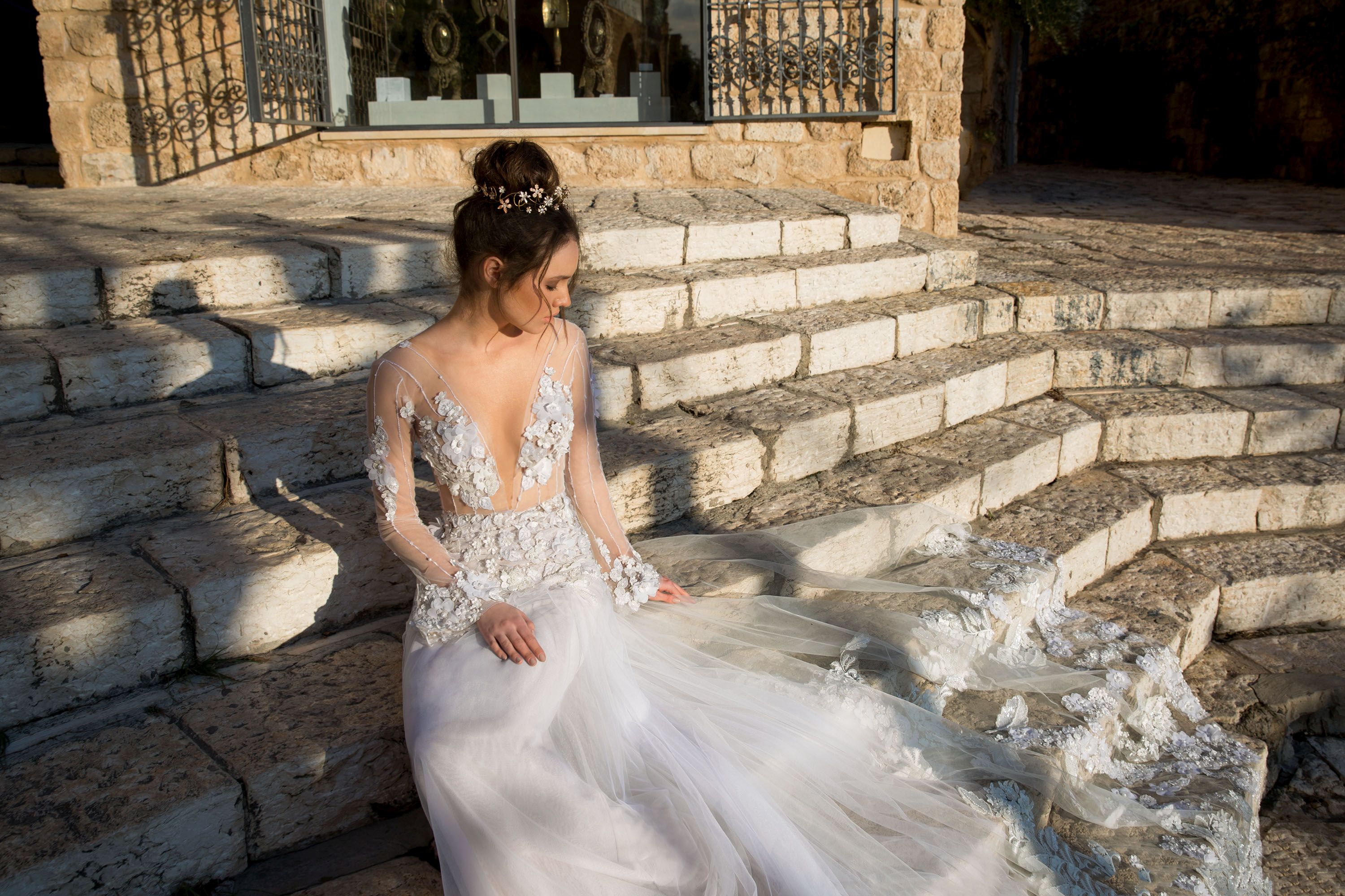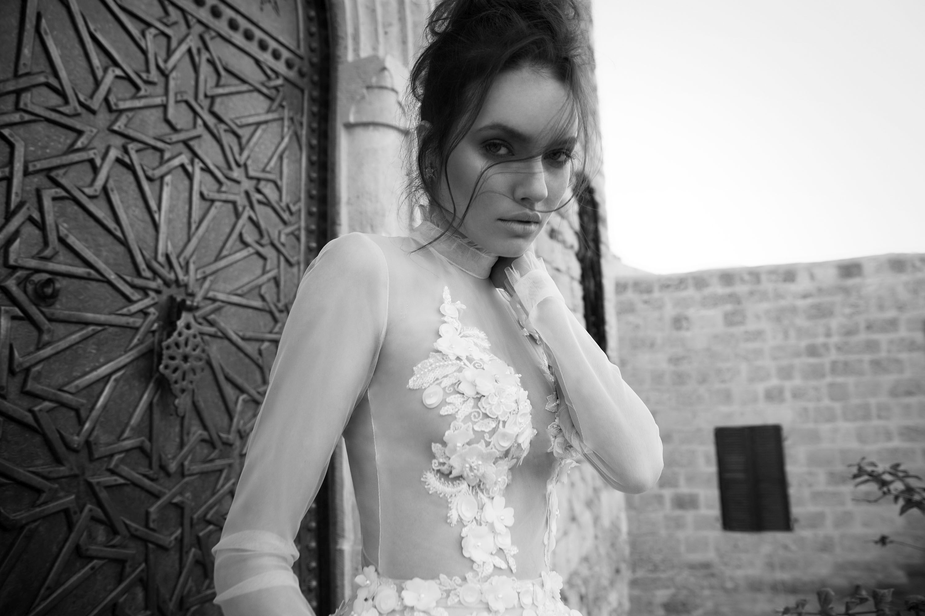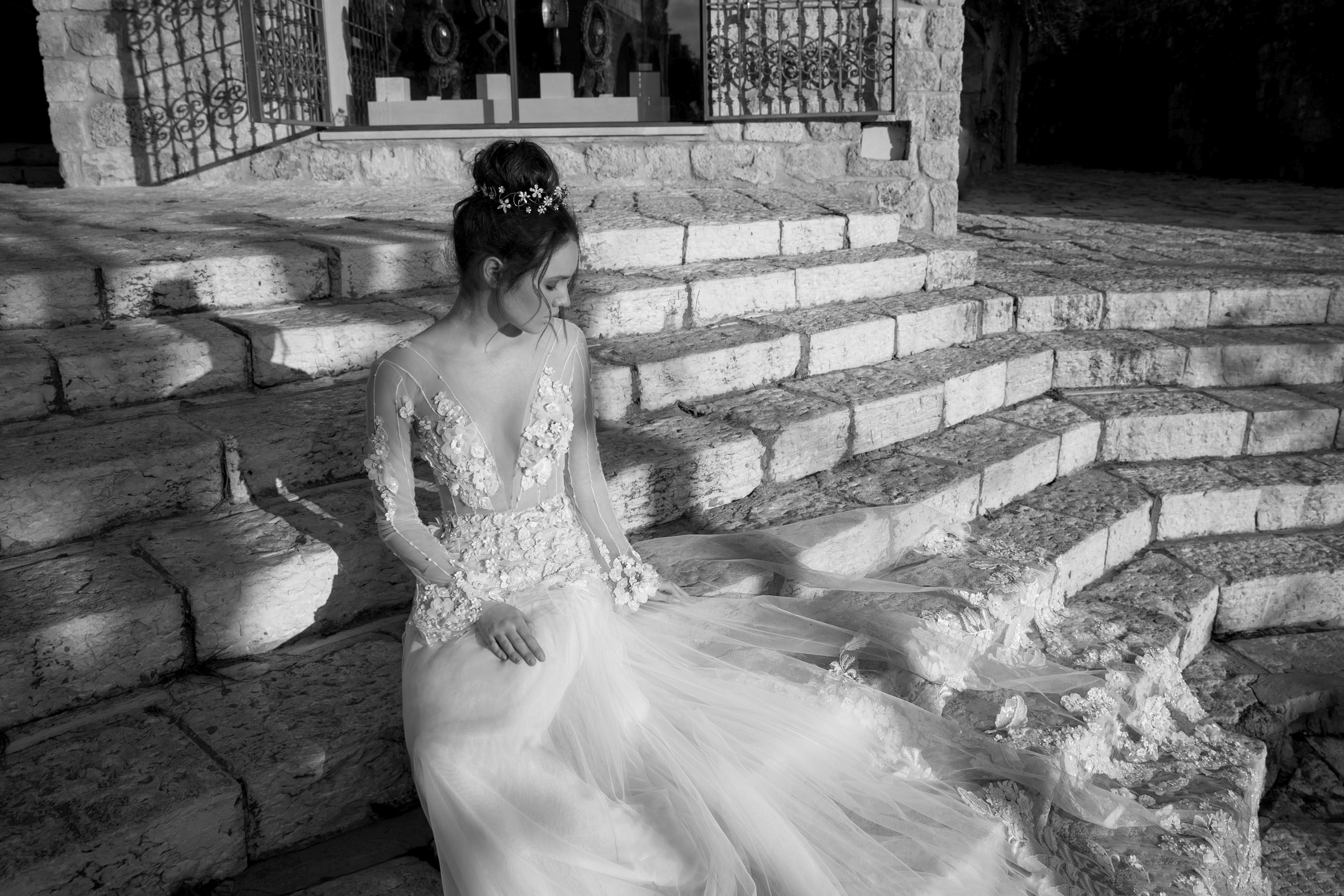 שמלה סופר מחמיאה ונשית העשויה מתחרה מרהיבה, משלבת משחקי שקיפויות ובעלת מפתח אוף דה שולדרז ייחודי הגורם לכלה למראה אצילי במיוחד. -