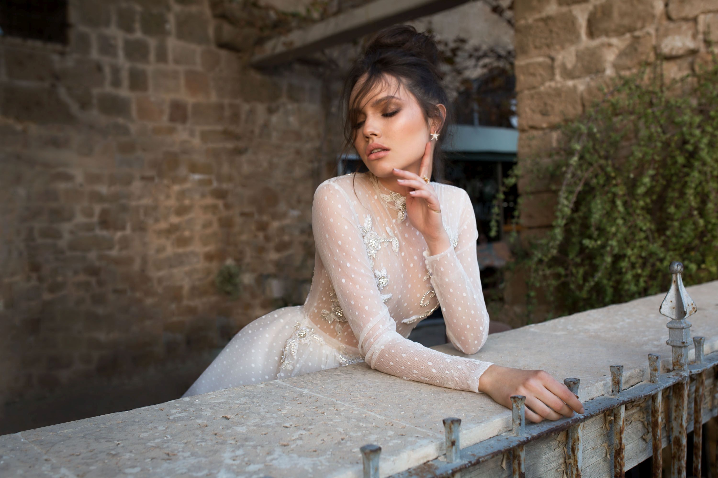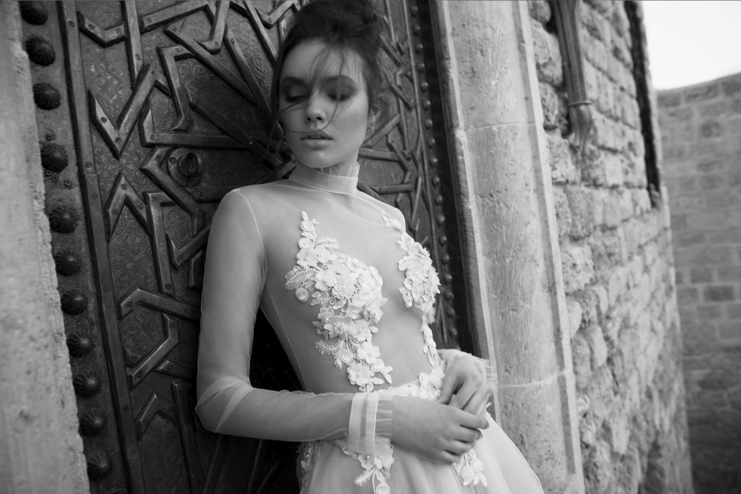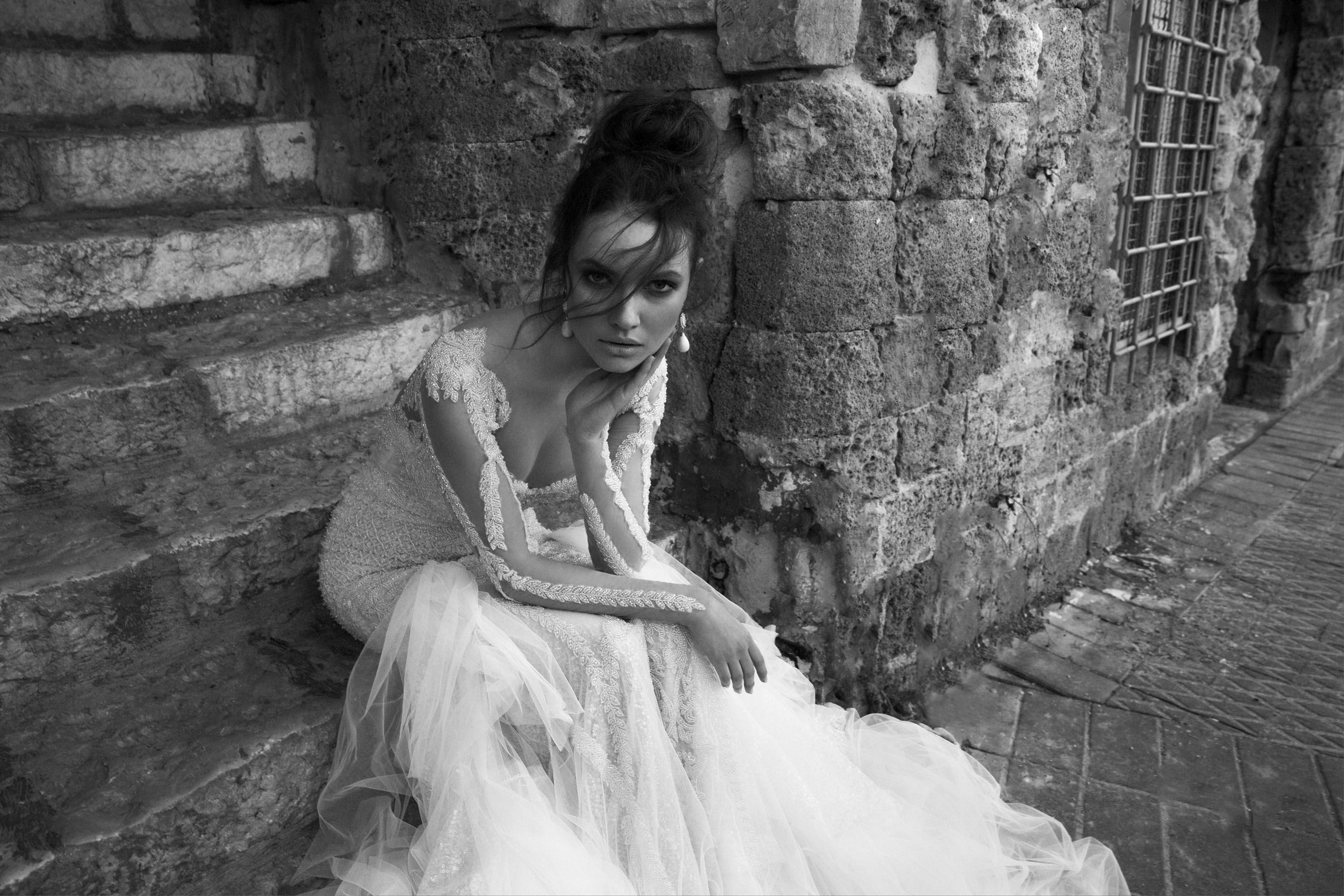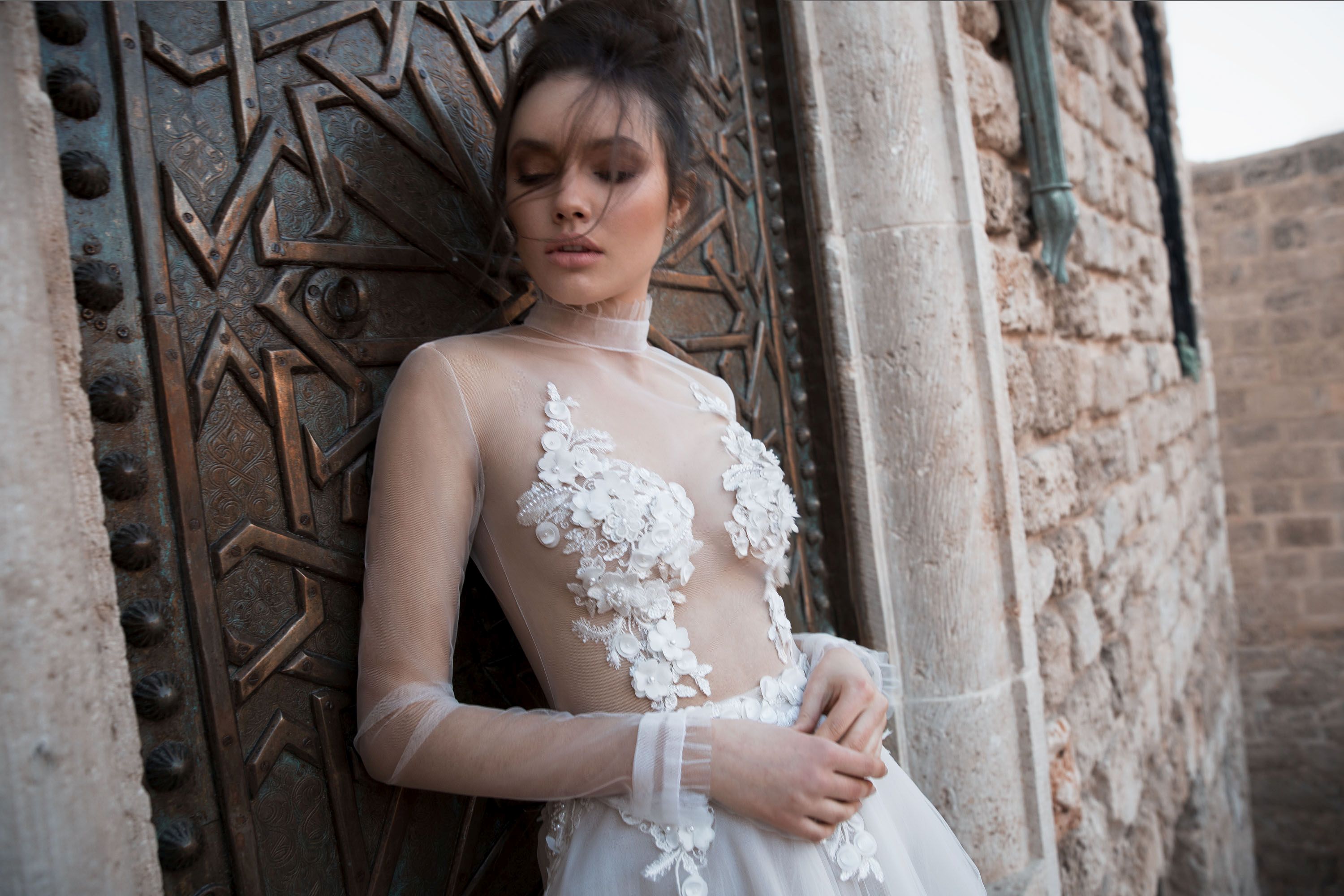 שמלה סופר מחמיאה ונשית העשויה מתחרה מרהיבה, משלבת משחקי שקיפויות ובעלת מפתח אוף דה שולדרז ייחודי הגורם לכלה למראה אצילי במיוחד. -